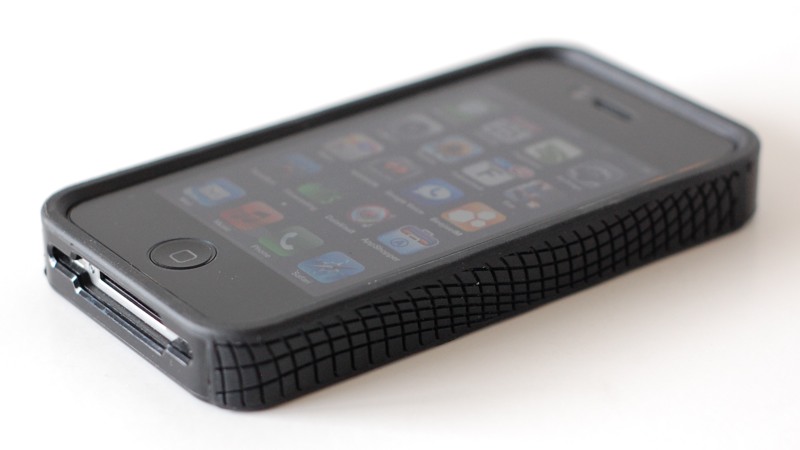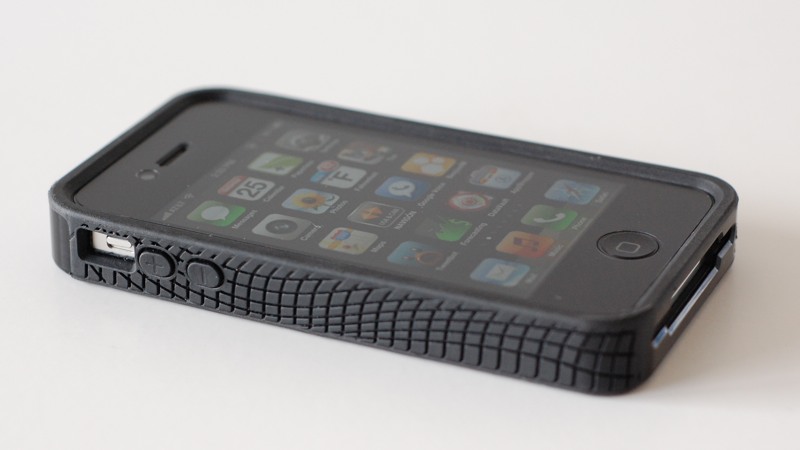 There are cut-outs for the headphone jack, camera lens and flash, and dock connector. The headphone jack cut-out was large enough for my after-market headphones (V-Moda Remix Remote headphones) and the camera cut-out is quite large and doesn’t affect the flash in dark conditions. The ring/silent toggle cut-out feels a little small but is still usable. The dock connector cut-out easily accommodates the thinner connectors of the USB cords that come with the newest iPhone but doesn’t accommodate the older, fatter connectors on cables that came with older iPods or those of some 3rd-party accessories.