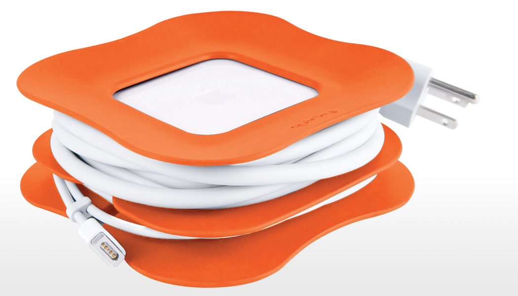 The PowerCurl comes in three different sizes to accommodate the 45-, 60- and 85-watt power cords of the MacBook Air, MacBook, and MacBook Pro, respectively. It’s available in several colors, including blue, green, gray, and orange though not all sizes are available in all of these colors. I have the 45-watt model in orange. All sizes and colors of the PowerCurl cost $14.99 and are available for purchase through Quirky’s site here.